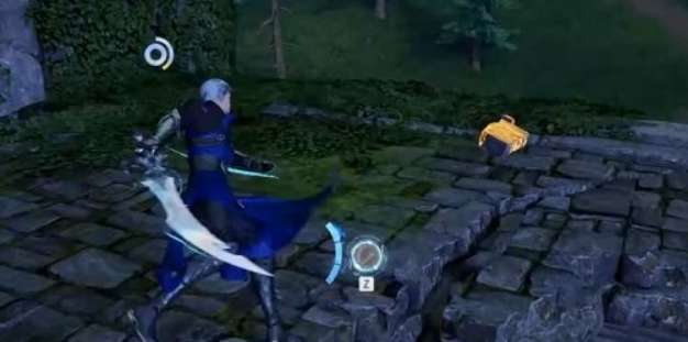 石碑碎片一共要收集三块,分散在附近几个地方。第一块在左侧建筑侧面的洞穴里,洞口有个标靶,打破标靶门就开了,进去拿就行。第二块在前方铁栅栏里面,这里要动点脑子,把蓝色石头牵引过去压住压力板,栅栏门才会打开。第三块最简单,直接在最上方的平台上,走上去拾取就好。三块碎片都拿到之后,回去把碎片安装拼接到石碑上,完成拓印,等NPC过来看完,再对话一次。