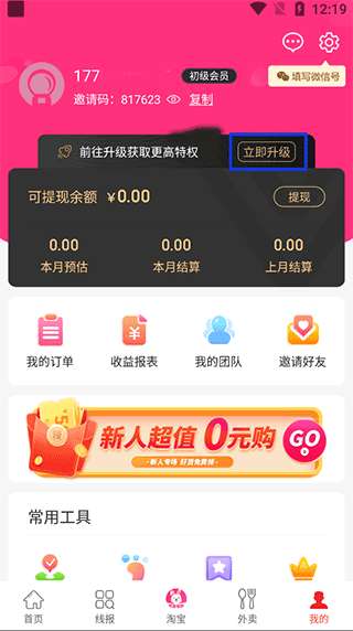 软件提交 专题合集 热门手游白白优选app怎么提升会员等级,打开软件,在“我的”一栏中找到并点击蓝色方框内的“立即升级”按键,在这里可以看到升级需要做的任务,点击去完成,软件即可把你带到具体任务界面,在完成任务后再次来到这个界面就可以点击下方的“升级”按键了。
