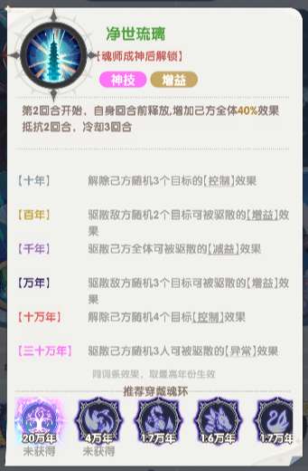 第2回合开始,自身回合前释放,增加己方全体40%效果抵抗2回合,冷却3回合
