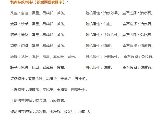 装备特效/特技(按重要程度排序):