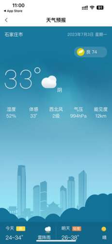 软件提交 专题合集 热门手游在掌上石家庄查看天气预报,可先下载安装该APP并打开,在首页通常能找到天气预报相关入口(如直接显示天气信息或设有天气模块),点击进入后即可查看石家庄当前及未来几天的天气情况,包括温度、天气现象、风力风向、空气质量等详细信息。