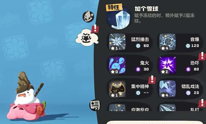 之后是第二个需要携带的技能,这技能叫做碎碎冰,这技能拥有造成魔法伤害以后给到一层冻结效果然后加20技能威力的效果,这是它的核心技能,不仅可以不断提升伤害,还可以去累积冻结层数。