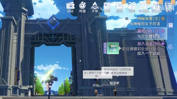 抵达沙滩后沿前向行进,不久即可发现一座规模宏大的古代遗迹群。此遗迹即为望海城外围屏障,穿行其中直至尽头,便可见到城池主体轮廓。由于所处位置处于整座城市的最低标高带,需攀爬右侧天然岩壁——岩石走向清晰且坡度平缓,跟随其延伸方向前进,最终可抵达连接城区的石桥入口。在此处激活传送锚点,后续即可实现快速往返。
