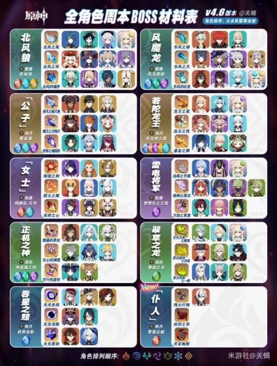 软件提交 专题合集 热门手游【V4.6版本】本次更新包含了新角色「仆人」阿蕾奇诺,以及其他全部角色天赋突破升级所需要的周本秘境材料对照表