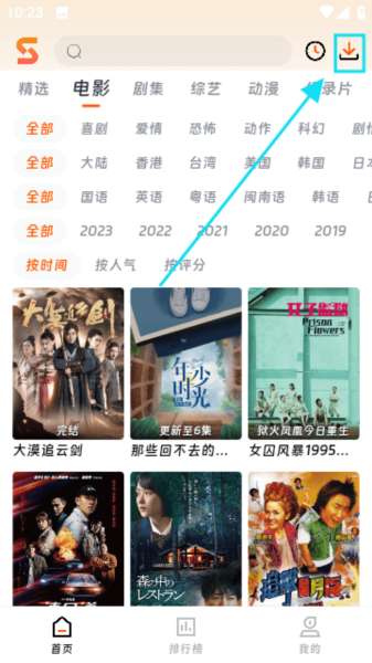 4、也可以在软件首页点击右上角如图所示的下载图标,查看下载列表