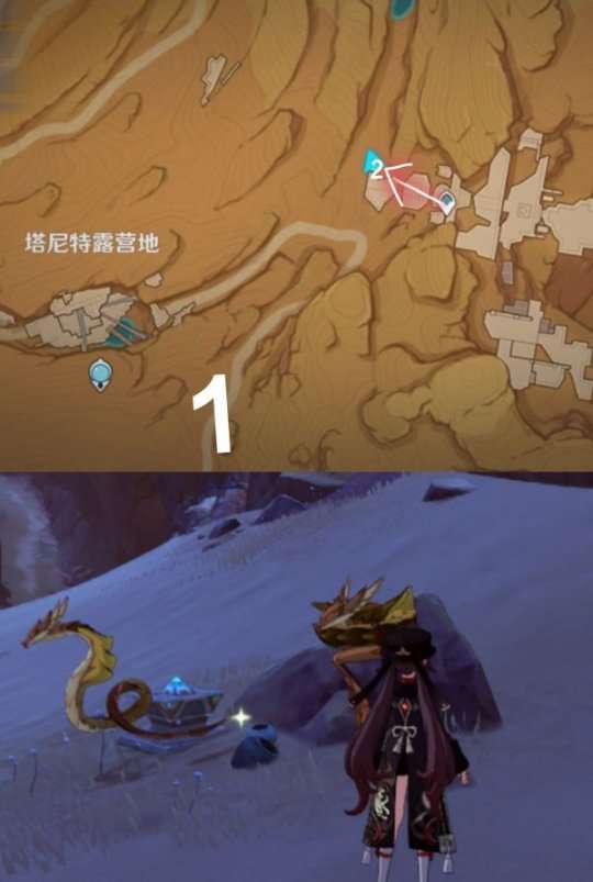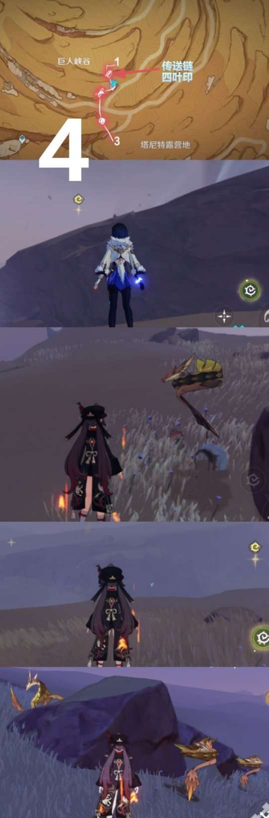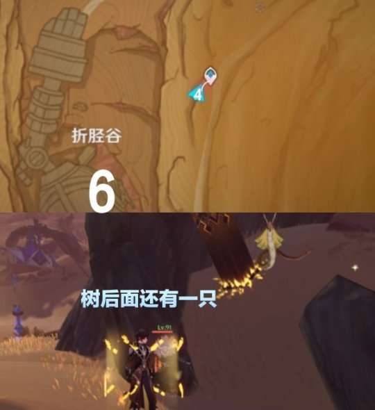 第六个地方位于折胫谷,大机器人旁边的传送锚点,这个位置相当推荐,因为真的很近,过来一共有四只,注意树后还有一只哦。