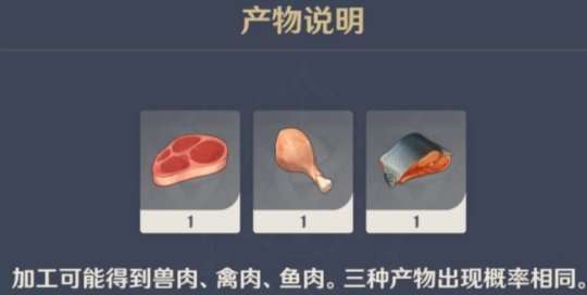 而奇怪的肉是随机加工成三种肉类的其中一种,虽然说的是概率相同,但我认为不可能出货的概率也一样,所以这也是考验运气的地方了……