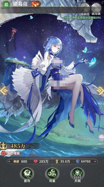 诸葛亮在本队中定位为功能型辅助,其主动技能可实现全体治疗,恢复量约为当前生命值的60%,同时提升全队10%攻击力。随着等级与天赋成长,该增益可进一步转化为30%暴击率加成。由于追击次数与怒气值直接挂钩,其稳定的怒气供给与群体增益效果,显著提升了全队追击触发频率与伤害转化效率。