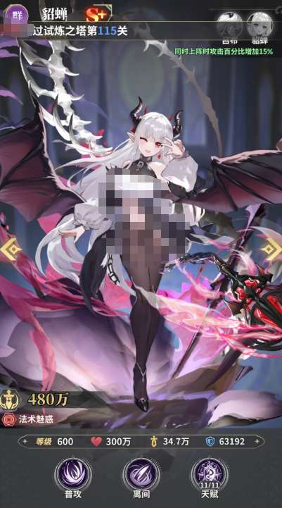 貂蝉承担控场中枢职能。她与吕布同在场时可激活特殊羁绊,额外提升15%全队攻击力。其“离间”技能对敌方血量最低的两名单位造成120%法术伤害,并有30%概率附加“魅惑”状态——被魅惑目标将无法行动。若魅惑失败,则自动削减目标1点怒气并降低其10%攻击力,兼具干扰、反制与节奏压制三重作用。