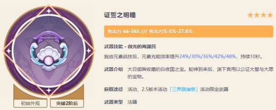不过,就算没有专武,实际上,四星武器中也有一把很适合闲云的武器,那就是当时渊下宫的活动武器,证誓之明瞳。
