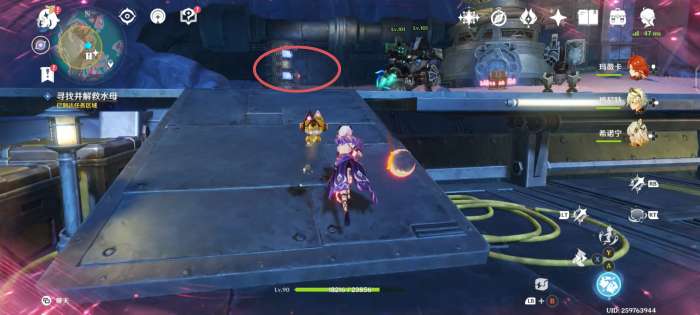 从建筑内部出来后,将一旁的[月矩力析离机]破坏后出现敌人,将敌人全部击败后与[即将消逝的水母]对话;