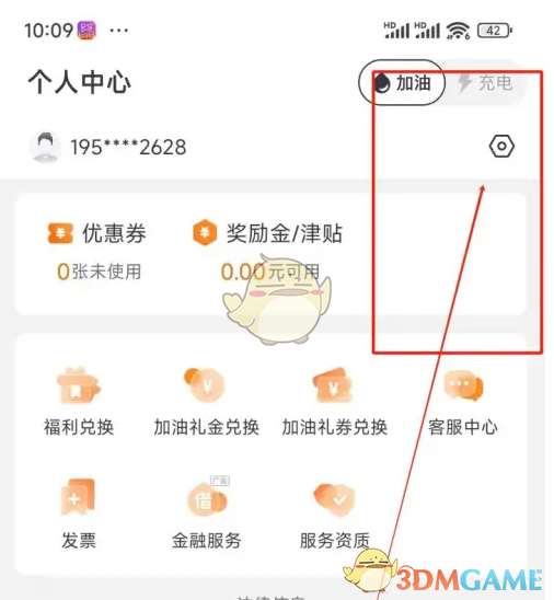 1、打开滴滴加油App,在主界面点击右下角的“我的”,在我的界面中点击右上角的“设置”