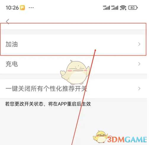 5、在加油界面中点击“个性化广告”右侧的按钮