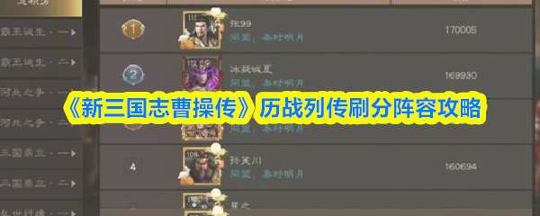 以上就是《新三国志曹操传》历战列传刷分阵容攻略,更多相关攻略,请关注pk游戏网更新!
