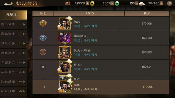 分数是看回合数和行动数,动的越少分越高,人物必须上满,比如1回合是100分,同样的1动打完,上10个人分是2990,上5个人分是2980。(有些1回合打不完的,可以用袁绍拉人,我试过一次多了1分,有兴趣的可以尝试。)曹操徐庶被动加属性,上阵顺序会导致属性有一点波动,阵容调整完后,最后来回动一下曹操位置,就是最大属性。