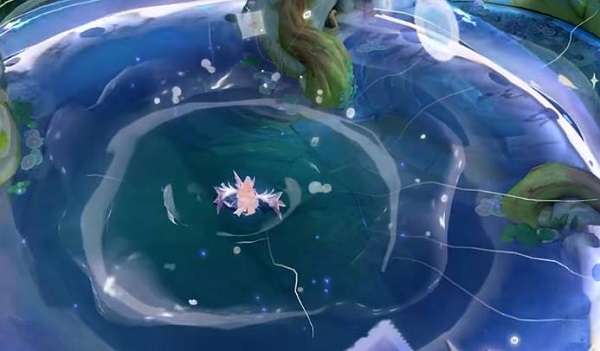 带有手绘色彩和贴纸纹理的魔法水波飞出,星光熠熠,溅起水花。