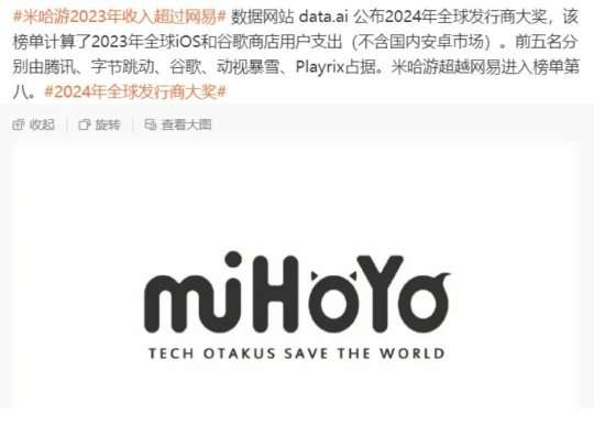最后就是老米2023年收入的一个情况了,废话不多说,具体大家直接看下图哈,根据某浪发布的消息来看,老米2023年收入超网易,该榜单也计算了2023年全球i0S和谷歌商店用户支出(不含国内安卓市场),其中前五名分别由腾讯、字节跳动、谷歌、动视暴雪、Playrix占据,老米则是超越网易进入榜单第八,只能说是赢麻了,所以说大家怎么看呢?