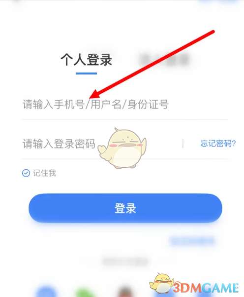 3、然后,输入【手机号】或【用户名】或【身份证号】。
