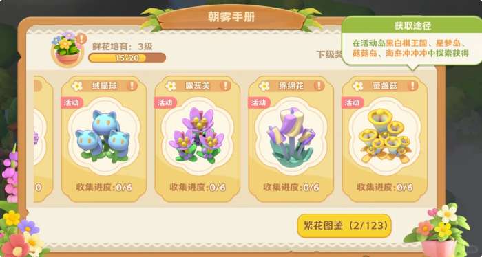 3.图一图二图三图四,每波限时岛的1图都有隐藏彩蛋,彩蛋位置固定,奖励是图中对应花朵,不要浪费,获取后攒着等授粉裁剪,比如星梦岛的彩蛋青蛙和花种