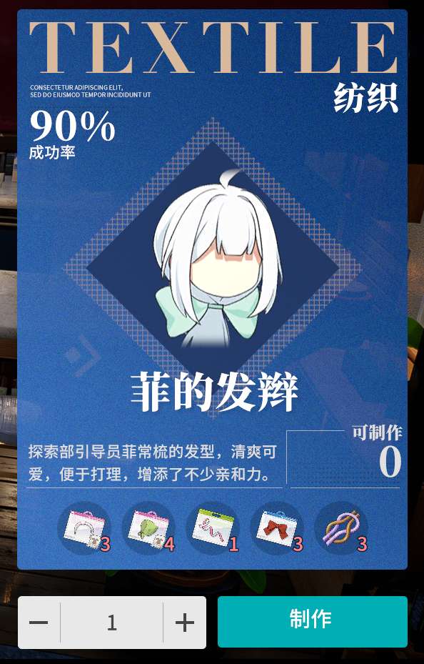 家具制造的存在感有点低诶~毕竟角色突破用不到嘛~不过,家具制造是一个很好的消耗bp的方向哦!(做一个家具就要50bp消耗的当然快!)很适合大家不想清bp又不想浪费的时候随手搓几个~不过,有些比较好的家具还是会和工艺品挂钩,甚至1个家具就需要8个10个工艺品的产物,所以只能搓搓一些普通的家具啦~(结果还是要浪费好多的时间诶..)不过等到该家具的图鉴满级了之后就不要再做了哦!做多了会浪费的!至于做家具的其他素材,大多数还是能在地图中采集到的木头石头之类的啦~!多捡一捡就好了哦!