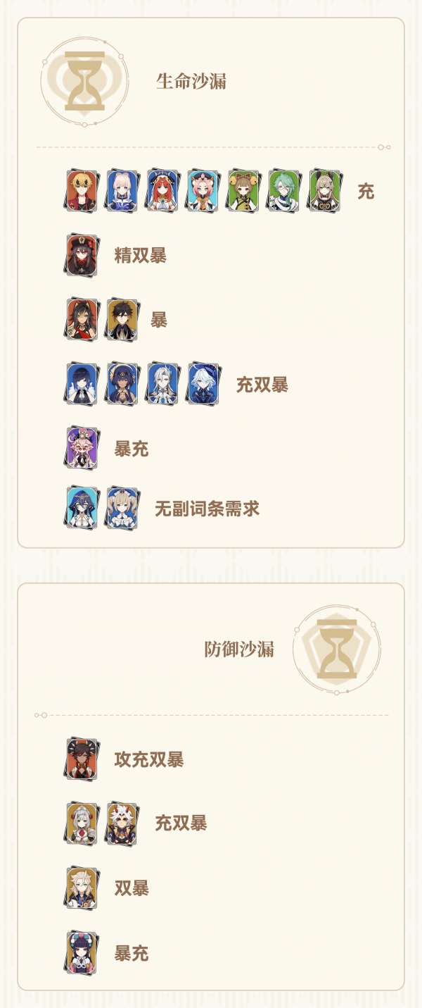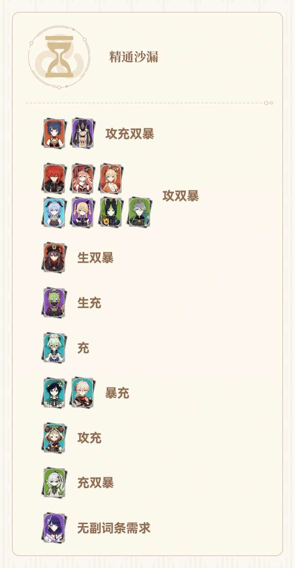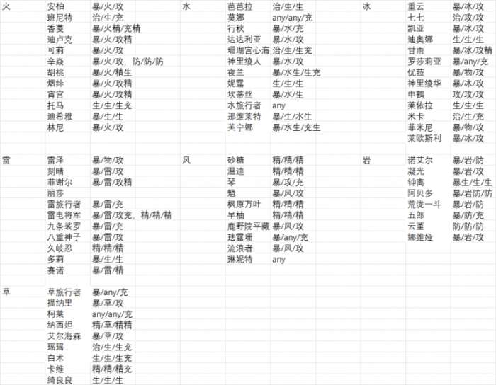 为了方便选择主词条,整理了一份全角色主词条参考,制作比较粗略,有问题可以指出。