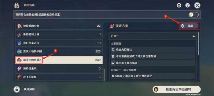(4)保存方案,返回主页面,点击“检索背包内圣遗物”,确认锁定即可。