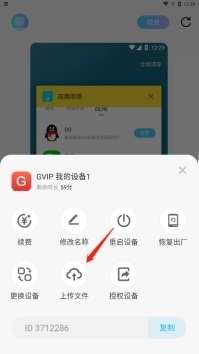 上传文件:可上传文档、图片、应用三种。在设备里的应用市场找不到你想运行的游戏的话就可以自行上传到云机里,设备外设备内部都有上传按钮,点击上传以后点击安装就可以在云机里使用了。