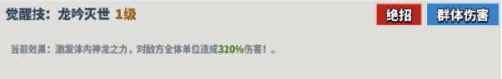 描述:激发体内神龙之力,对敌方全体单位造成320%伤害。