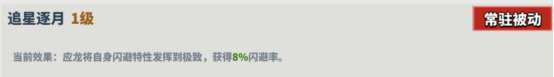 描述:应龙将自身闪避特性发挥到极致,获得8%闪避率。