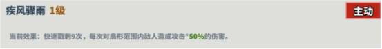 描述:快速戳刺9次,每次对扇形范围内敌人造成攻击*50%的伤害。