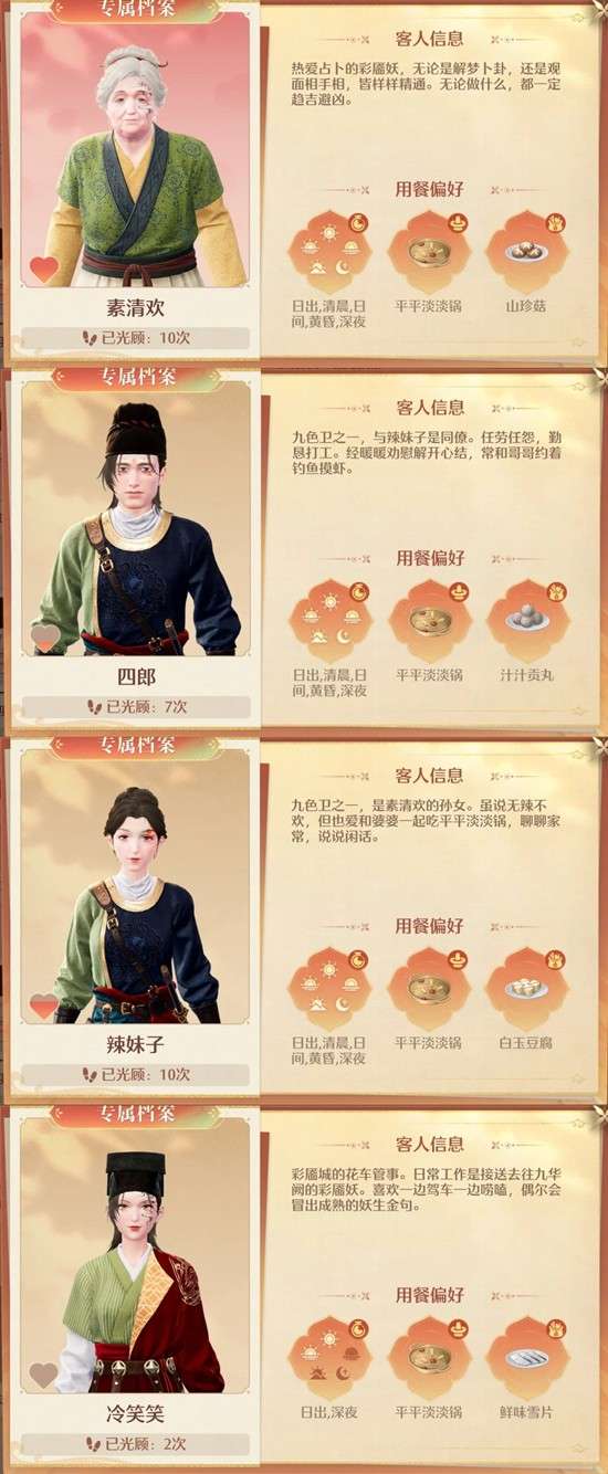 3、有部分NPC一直刷不出来,我是先把能做的任务都做完才开始玩火锅坊,不排除要先在任务中认识才会来吃饭;或者把锅底换成你要刷好感度的那个人的喜好(玄音爱吃酸酸甜甜锅和翠藻结,翠藻结目前解锁不了,只换成酸酸甜甜锅也来了);