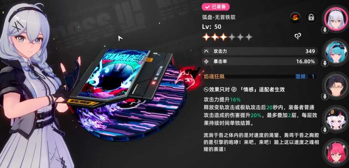 弧盘本质是以情感能量以及本能冲动为燃料的次世代武装接口,通过神经链接将武器特性转化为角色本体能力。不仅可以直接提升攻击/防御/生命等面板数值。满足特定条件后还可激活战斗增益,例如伤害叠加、能量回复和属性转换等。同时弧盘存在严格的适配限制,装备前需要确认角色属性标签是属于情感型还是本能型。