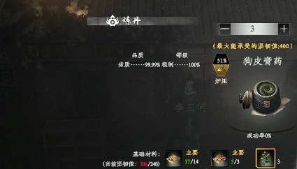 晋升丹灵后,玩家不仅可以解锁四阶级的丹药,还可以使用一些稀缺的丹药。苔枝松烟这就是其中的一种,不过在这一个阶段往往对于材料有较高的要求,需要通过隐藏地图或者是副本boss获取。并且在整个炼丹的过程中,还需要注重于坚韧性以及压力的平衡。在炼制狗皮膏药时,就需要把压力直接控制在400以内,避免颅压比较高而导致丹药报废。确保每一次练字都能有效提升熟练度,而且还可以减少不必要的材料浪费,这也是大家在提升过程中的关键。
