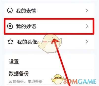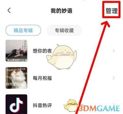 2、然后来到我的妙语界面里后可以看到自己添加过的妙语选项,接着在右上方点击“管理”图标打开。