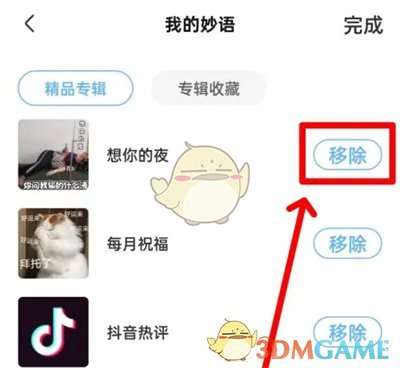 3、此时每个妙语后面会出现一个“移除”按钮,最后你不想再使用哪个妙语时就在它的后面点击“移除”选项,操作以后即可删除。