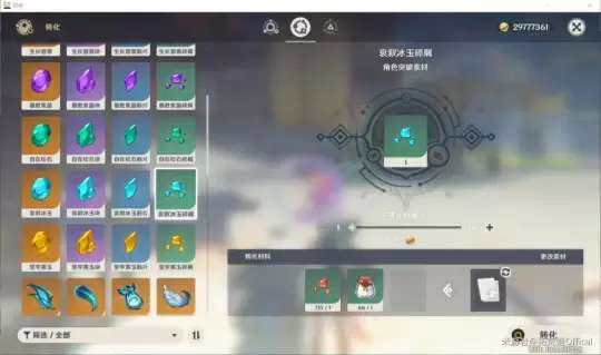 2)在合成台通过消耗一定的材料转化获得【转化材料如下图所示】