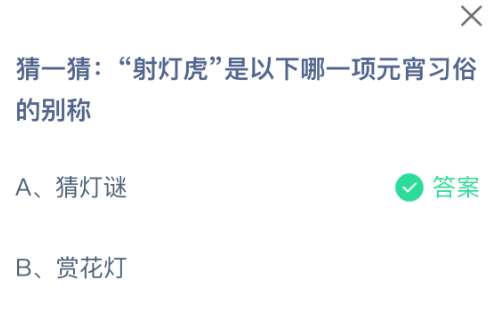 以上就是猜一猜:“射灯虎”是以下哪一项元宵习俗的别称?支付宝蚂蚁庄园2026年3月3日答案最新,更多相关攻略,请关注pk游戏网更新!