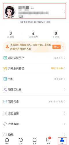 1、在我的页面进入个人中心内容;