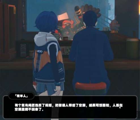 2、然后再回家休息到凌晨,出来六分街的拉面店“赤竹面馆”就能看到NPC“牧羊人”,说有个委托要找你去做。