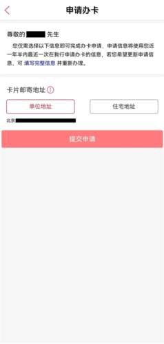 4、如果您近一年半内办理过我行信用卡,可以直接勾选邮寄地址,按照最近一次填写的个人信息申请办卡,点击“提交申请”完成申请。