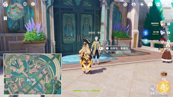 传送到枫丹冒险家协会旁边的锚点,向南沿楼梯下去,到这里的小屋前与勒鲁瓦对话。