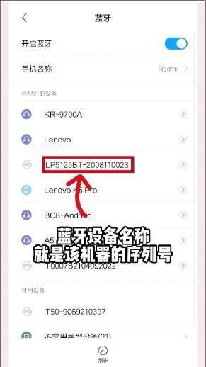 第二步。打开蓝牙进行匹配,这时候就会显示设备的序列号,点击它。如图所示。