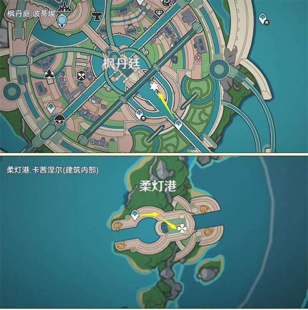 1.枫丹庭 波蒂埃,仅在白天出现,对话可以获得赠礼柔灯铃x4