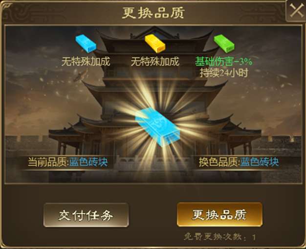 换色5次后必定为绿砖及以上品质,中途放弃更换品质会保留最高稀有度;
