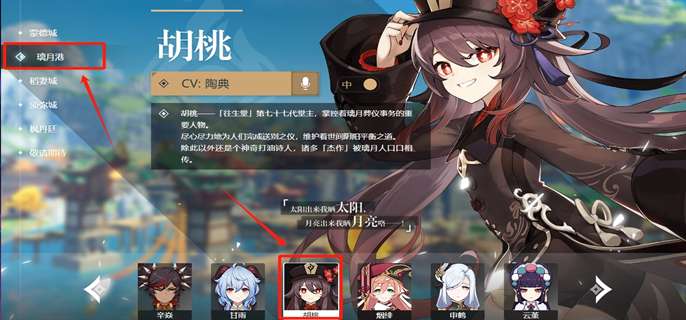 2、选择璃月港,在璃月港中点击角色胡桃;