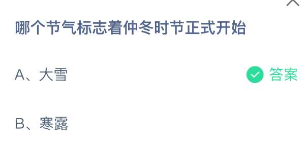 以上就是哪个节气标志着仲冬时节正式开始,支付宝蚂蚁庄园2025年12月7日答案最新,更多精彩内容,请点击关注pk游戏网更新!