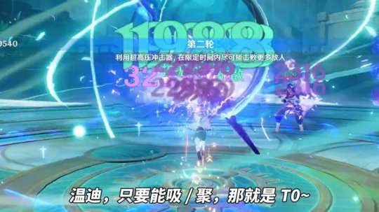 温迪,能聚就是T0。只要敌人具有可牵引或可吸附的属性,在选择合适的角度后,使用聚能技能并结合其他具有攻击能力并且能够控制风眼的角色技能,就可以快乐地“割草”敌军。