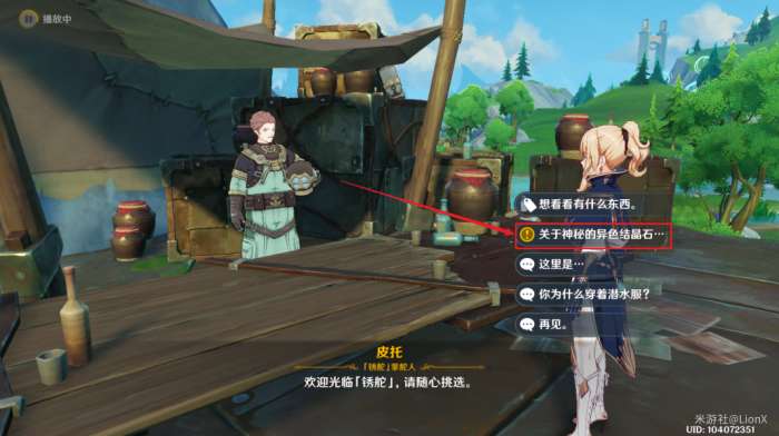 【额外奖励】概率掉落「神秘的异色结晶石」可于「锈舵」处兑换2W摩拉。