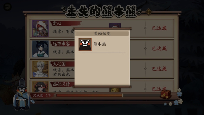 软件提交 专题合集 热门手游今日,阴阳师正式服更新后,与熊本熊联动活动开启,上午十点活动入口出现,阴阳师玩家只需要完成“走失的熊本熊”任务,熊本熊就会来到庭院之中啦。