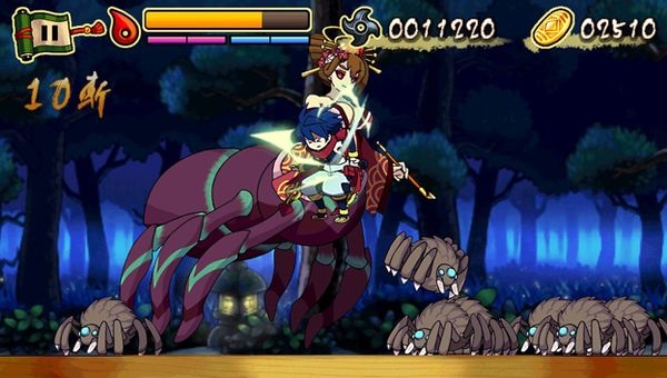 《退魔忍法帖》是一款和风2D横版动作游戏,于2013年6月首次登陆PS Mobile。游戏中玩家将扮演见习忍者影丸,前往击退袭击人类的妖怪。
